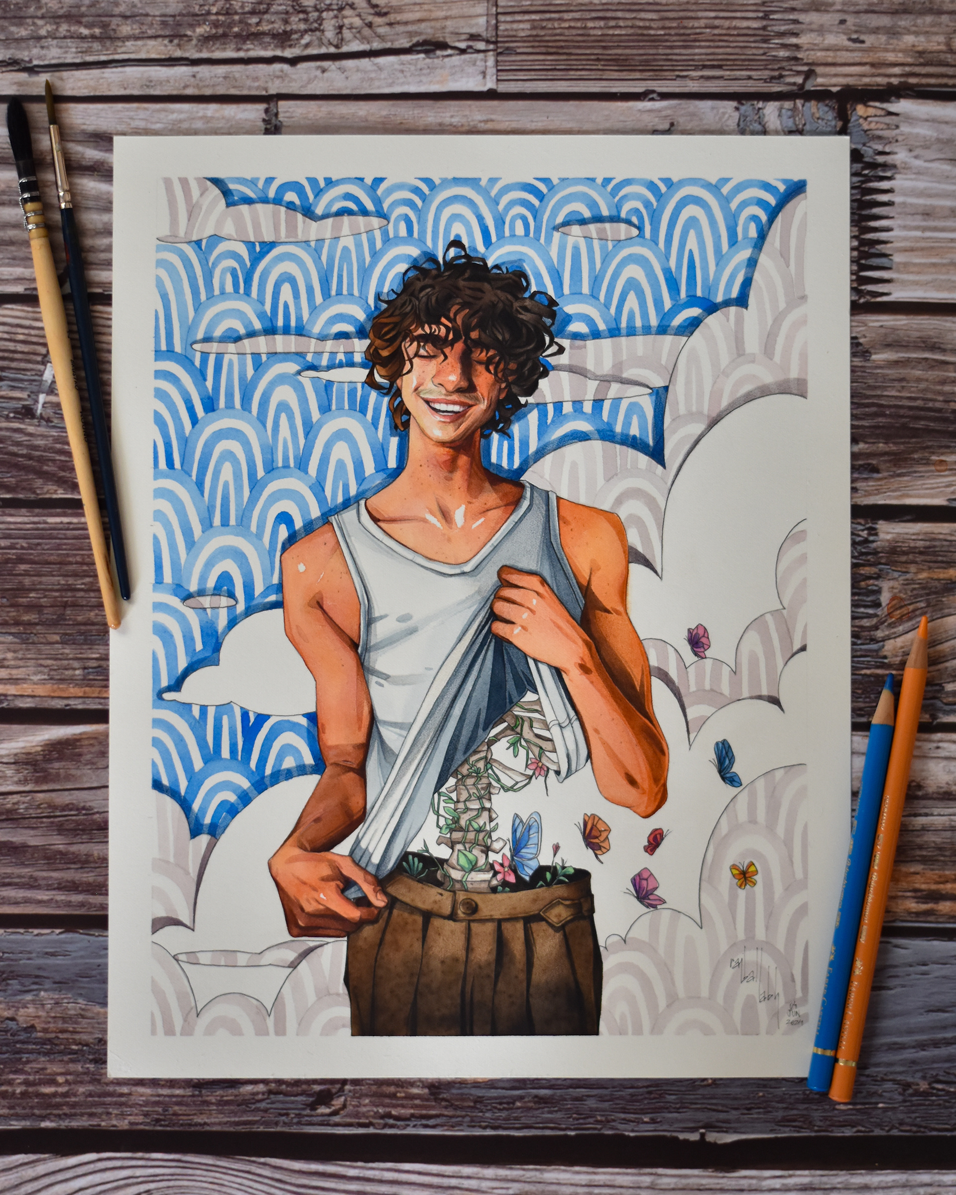 So, this illustration was actually meant for my figure drawing practice, but with the course of its process, it had changed its direction to more of an abstract idea which even I didn’t know or had planned to represent anything in particular through this illustration. I was simply on an adventure to make things interesting, therefore I needed to twist the realism out of the reference image to make it look unconventional. Later, however, after completion, the guy did look like someone who’d just been kissed and had a butterfly stomach. Hence, this gotta be pretty much the concept behind this illustration that was made in a very candid manner.